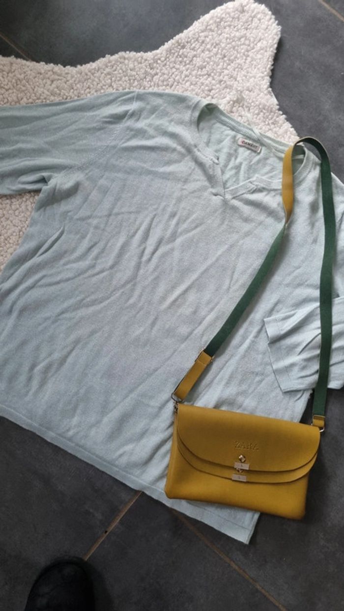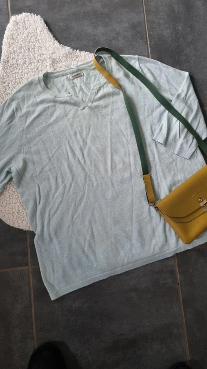 Pull léger haut Damart 50 52  XxXXXL bleu ciel légèrement pailleté - photo numéro 12
