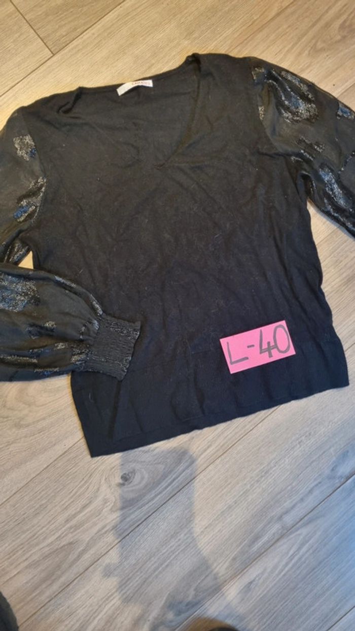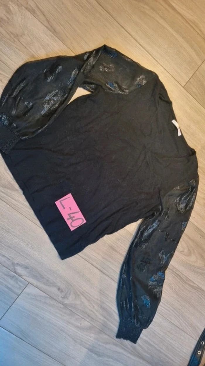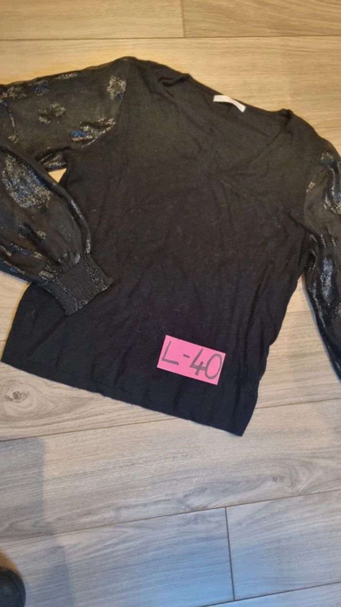 Tee shirt Manches longues Camaïeu L 40 noir manches habillées transparence - photo numéro 9