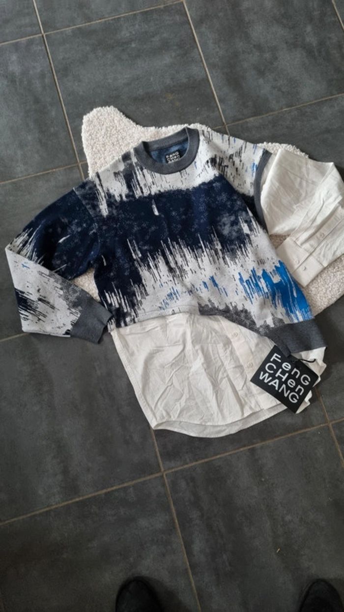 Pull homme / chemise blanche créateur FENG Chen Wang M  neuf étiquette - photo numéro 1