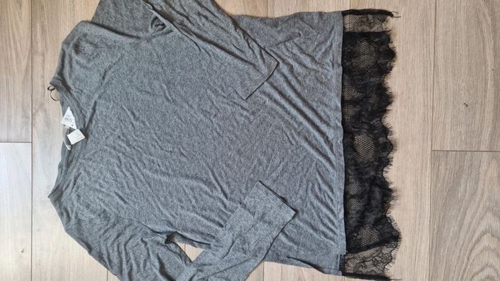 Haut top H&M manches longues neuf gris dentelle taille S - photo numéro 1