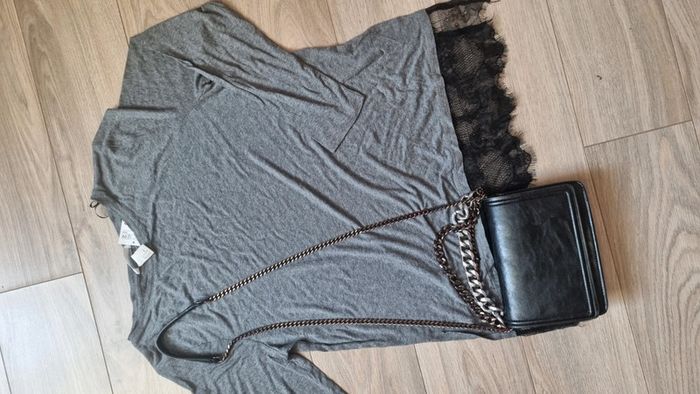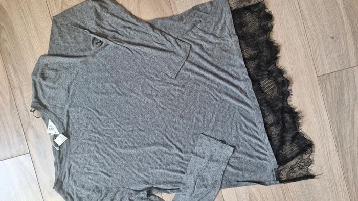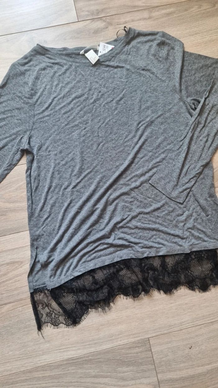 Haut top H&M manches longues neuf gris dentelle taille S - photo numéro 2