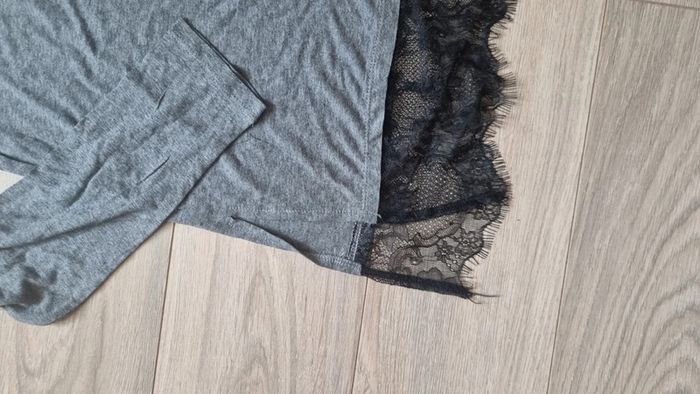 Haut top H&M manches longues neuf gris dentelle taille S - photo numéro 6