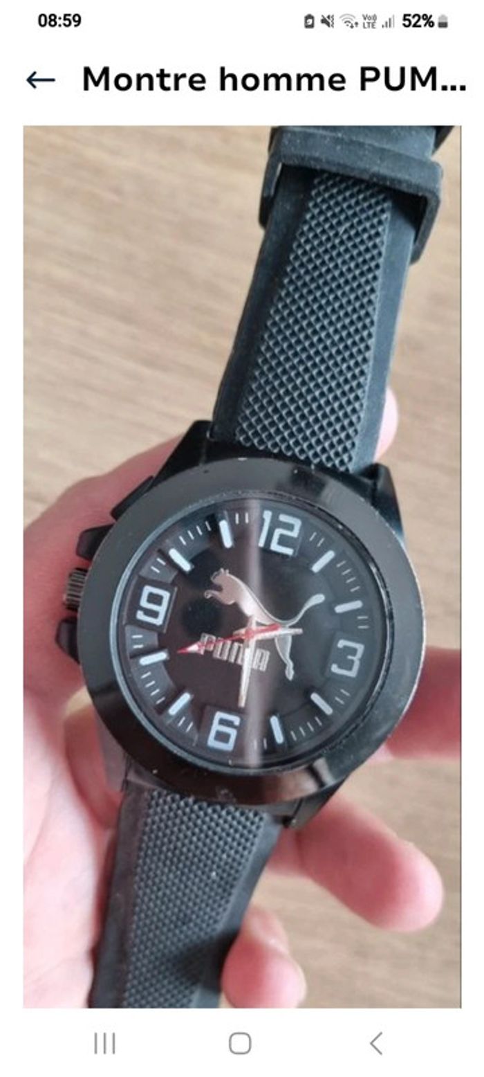 Montre puma neuf noire Montre assez imposante Pile à mettre en place Envoi possible à 0.99 en mondial relais, en France 😁