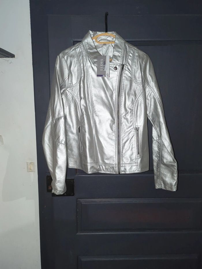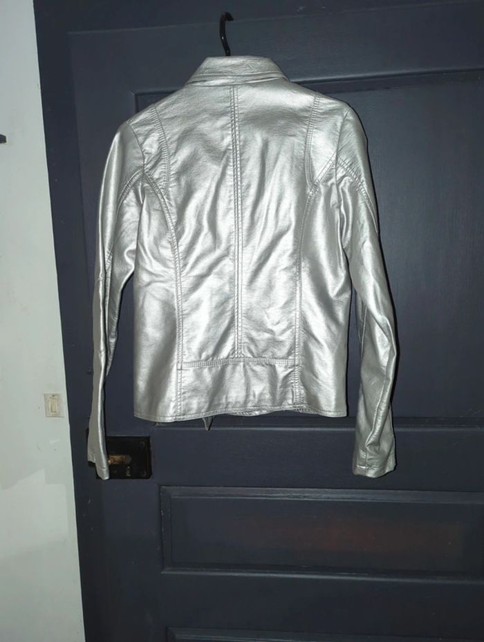 Veste /perfecto simili cuir argentée, Neuve avec étiquette, Taille 39 #biker