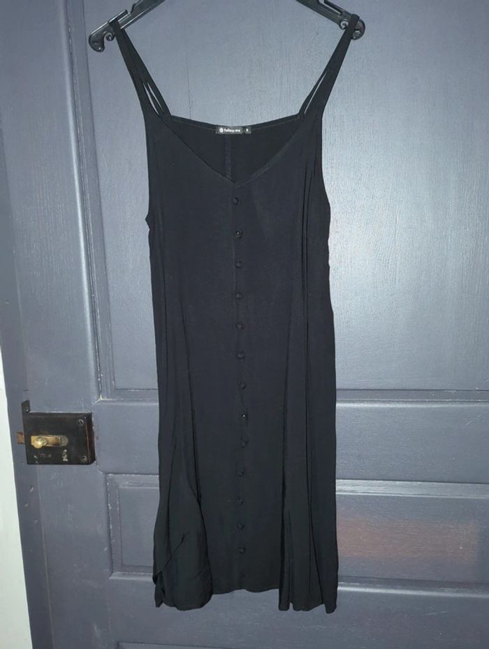 Jolie petite robe légère noire, Boutons tout le long Doubles bretelles Très agréable à porter