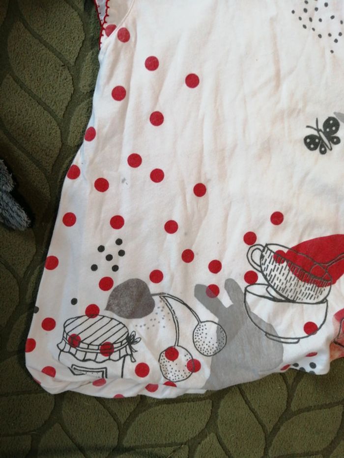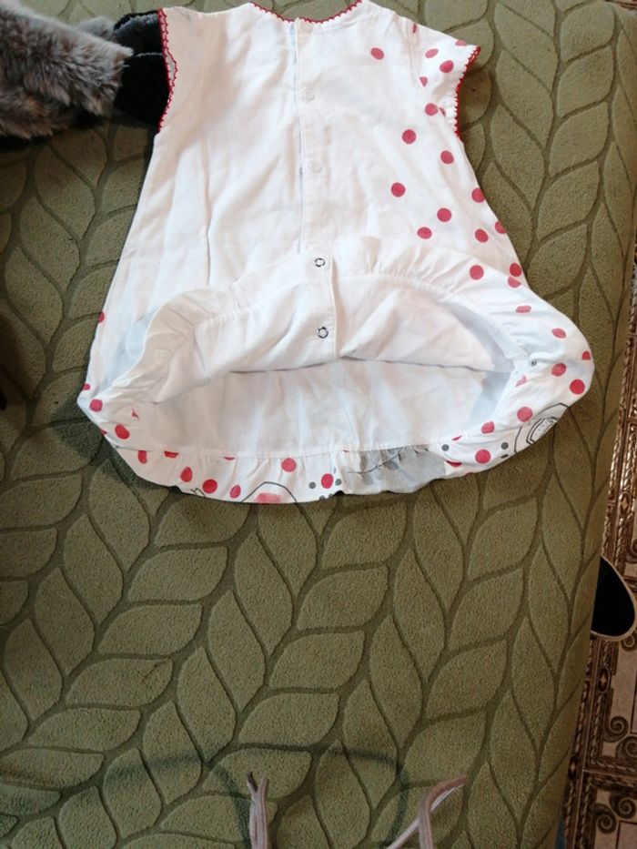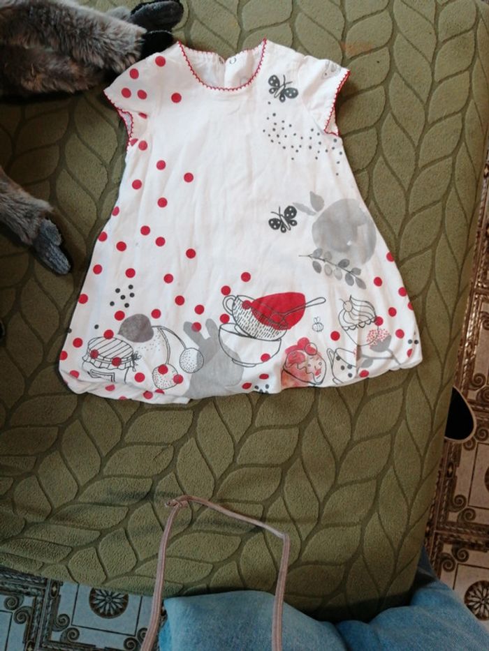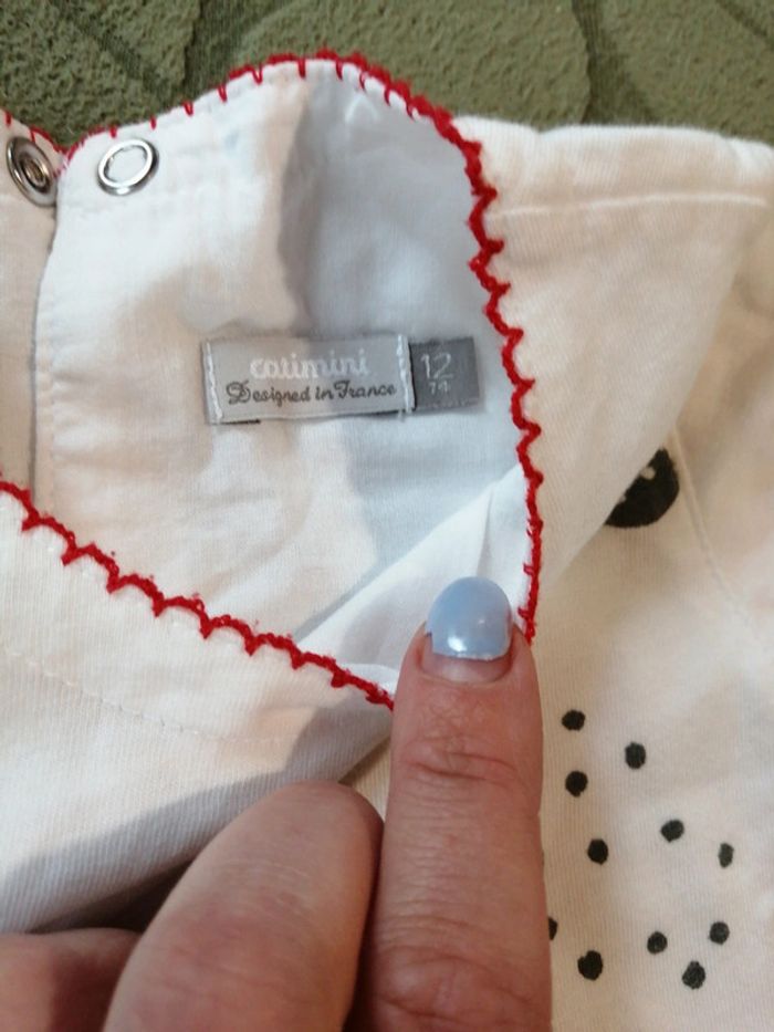 Robe catimini manches courtes, 12 mois, Quelques micro tâches grises se fondent dans le dessin. Je ne sais pas si elles sont d'origine