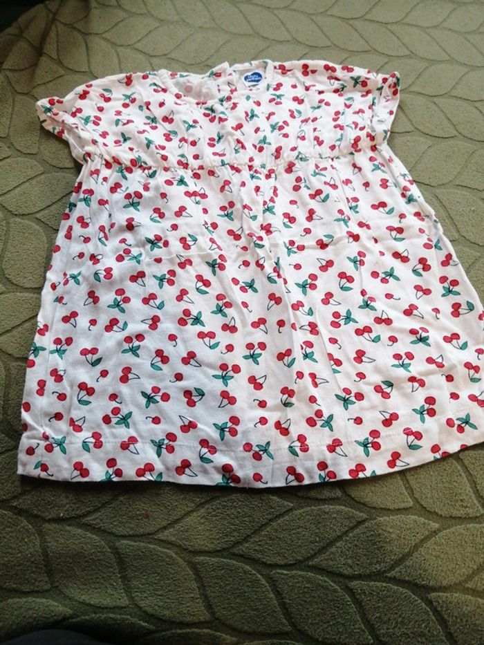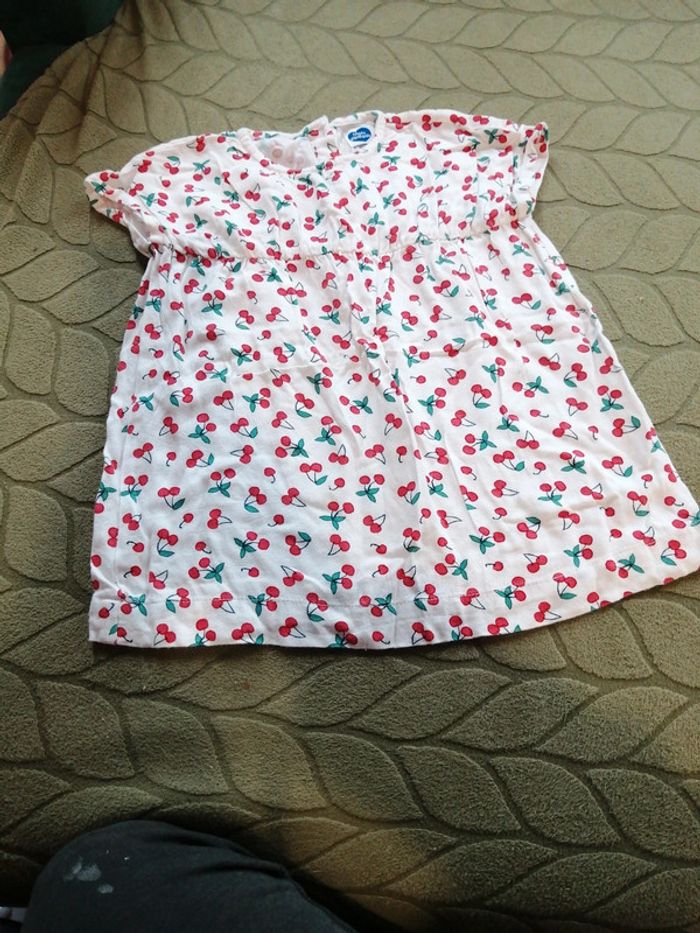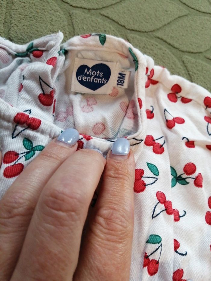 Jolie petite robe courte, Motif cerises, Mots d'enfants, Taille 18 mois Quelques peluches