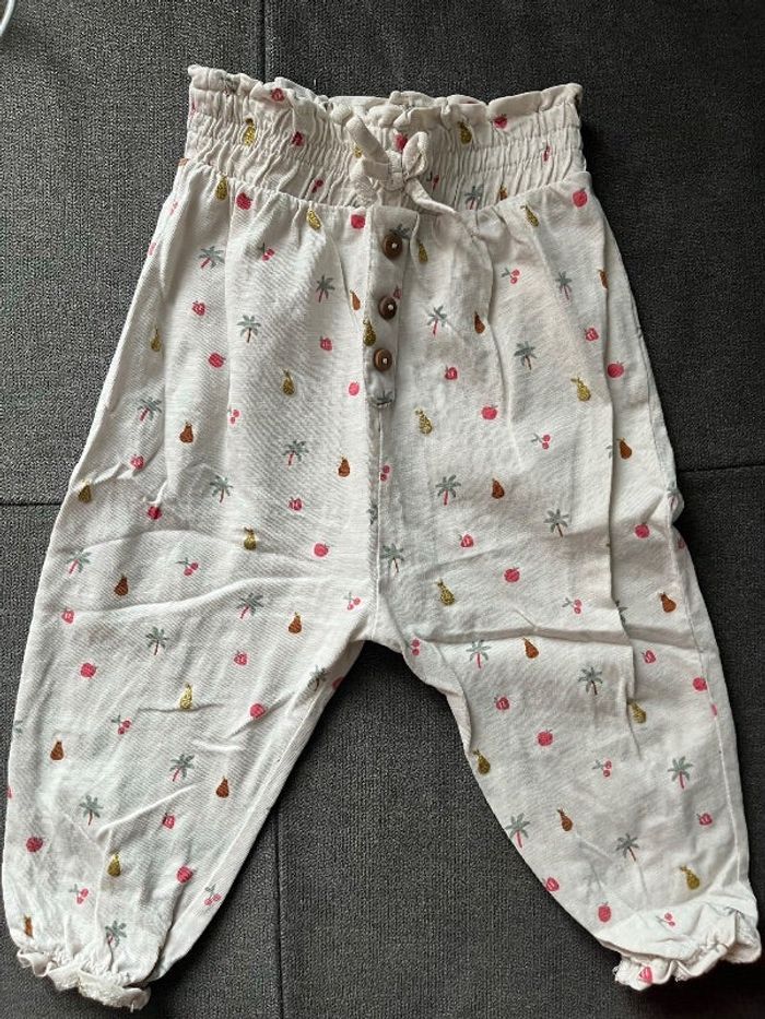 Pantalon fin style sarouel motif palmier, fruits Marque kiabi Très bon état #12moisbebefillemaevalp45