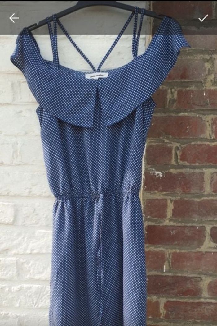 Robe à bretelles et épaules tombantes à petits pois t 34. A enfiler. T34 grain de malice..