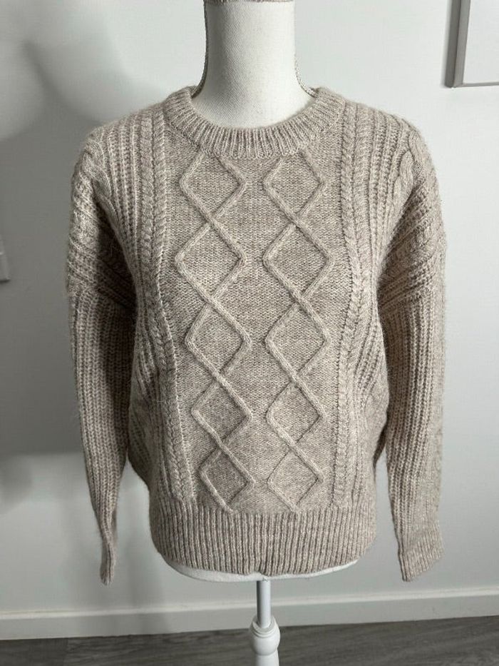 Pull mailles torsades beige crème sable laine et alpaga T36 S