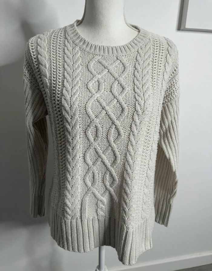 Pull - Excellent état - Taille 38 équivalent M - Couleur gris clair - Vintage, années 80-90' - Mailles torsades - Ultra doux et chaud - Col rond - Plus d'étiquette de taille ni de matière