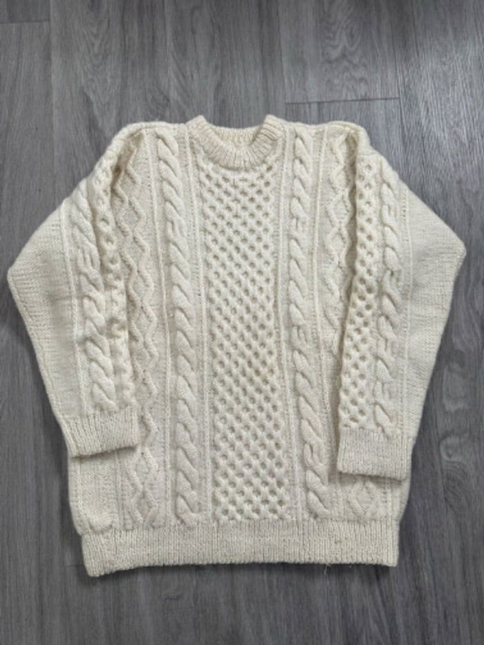 Pull en mailles torsades blanc crème Vintage T44 XXL