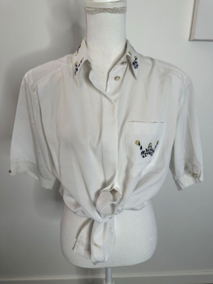 Chemisier blanc broderies navy marin Décade Kiabi Vintage T38/40 M/L