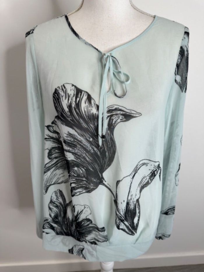 Blouse oversize - Excellent état - Taille 34 équivalent XS - Marque Suzy Shier - Coupe oversize - Imprimés fleurs - 100% Polyester - Manches longues - Lien à nouer au niveau du col - Légèrement transparente