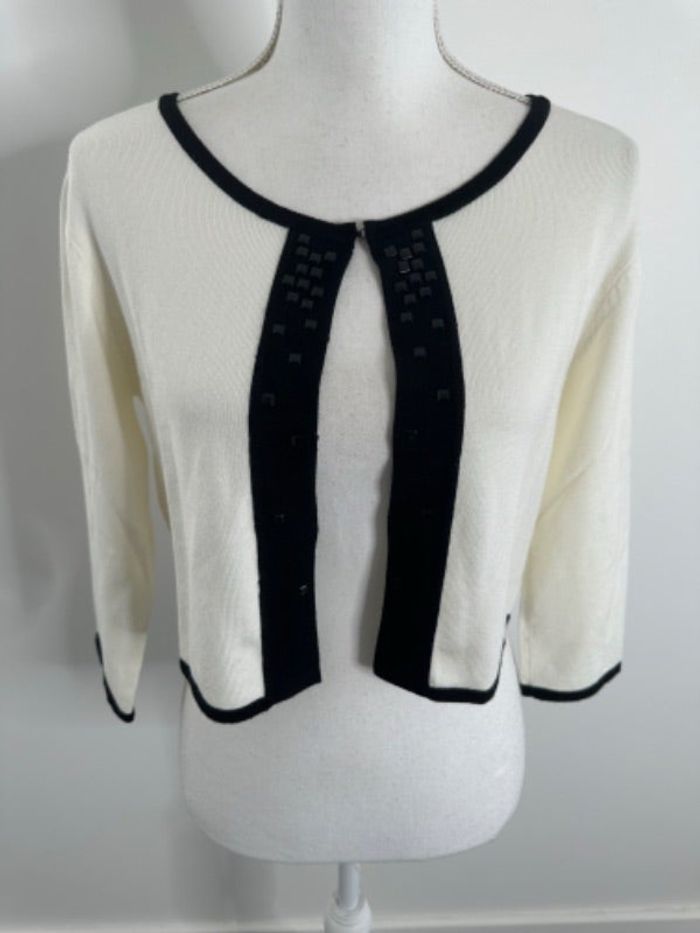 Boléro cardigan noir et blanc crème avec perles Paul Brial T2 38 M
