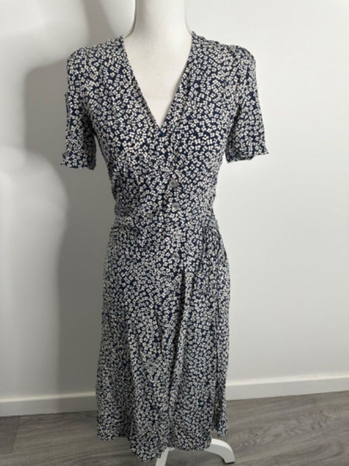 Robe portefeuille longue à fleurs bleue marine et blanche Rouje Paris T36 S