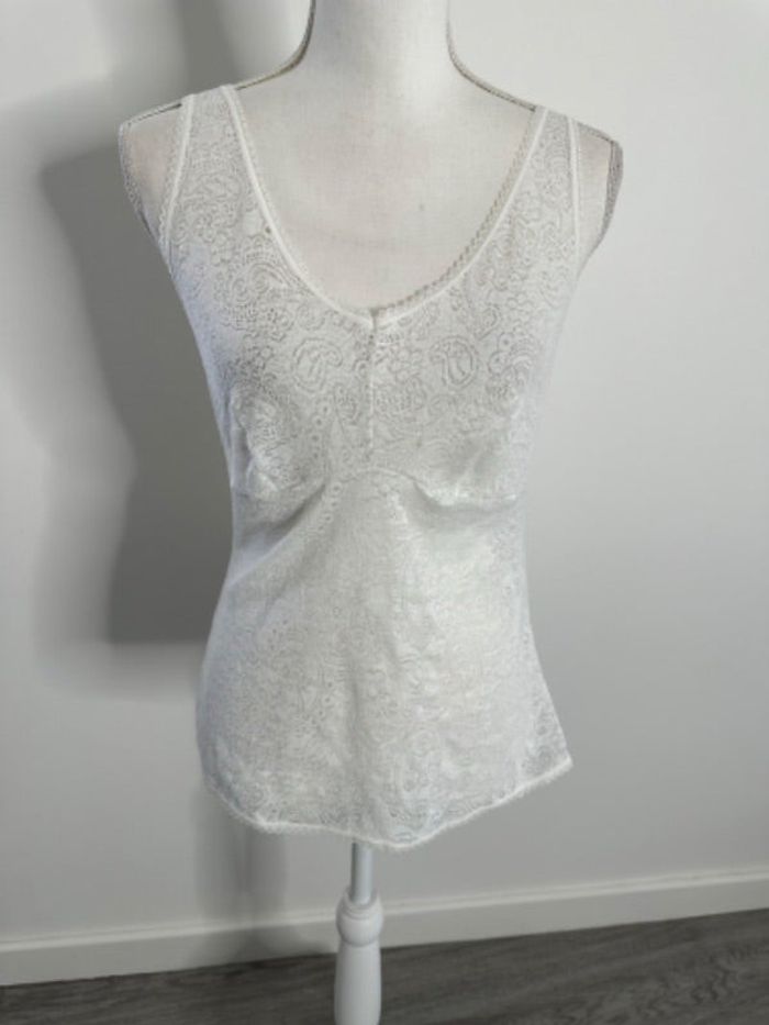 Débardeur en dentelle blanc Thermolactyl Damart Vintage T38 M