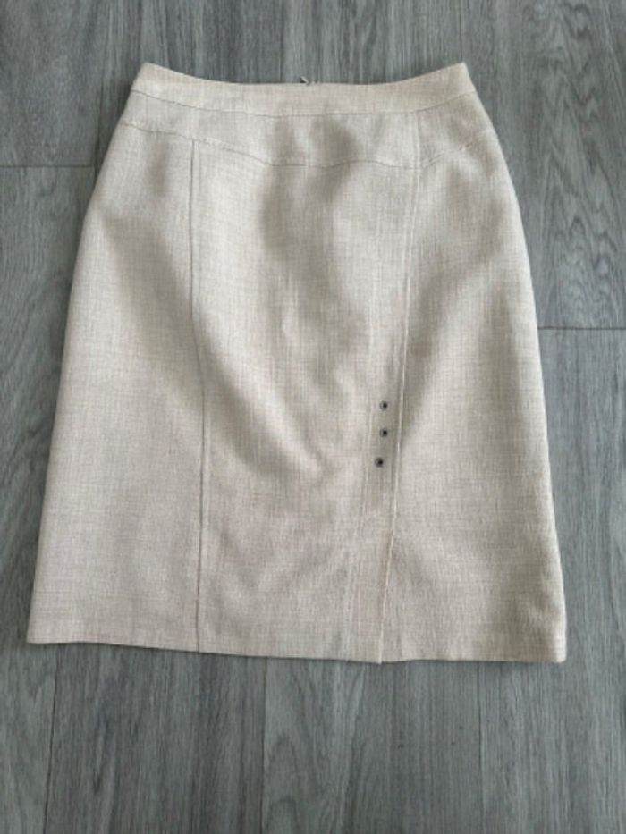 Jupe - Excellent état - Taille 38 équivalent M - Marque Christine Laure - Couleur beige crème - Œillets argentés - Doublure intérieure - Zip à l’arrière - 100% Polyester Dimensions: - 36cm à la taille - 59cm de long