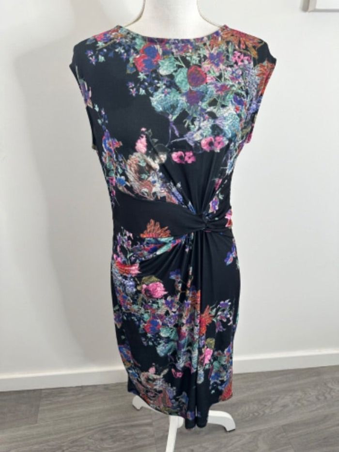 Robe drapée - Excellent état - Anna Field - Taille 38 équivalent M - Imprimés fleurs - Effet drapé à l’avant - Tissus stretch - Noire et multicolore - Polyester et élastane