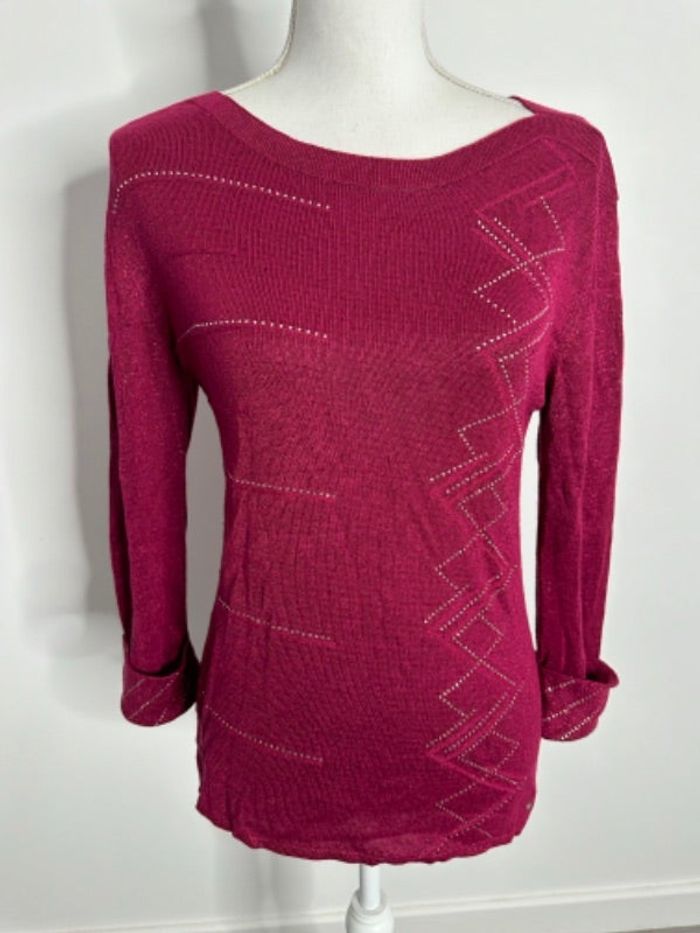 Pull rose fuchsia et strass argentés Christine Laure T1 38/40 M/L
