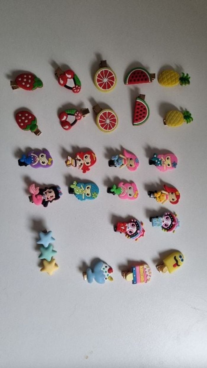 Lot de 24 Pinces barrettes Cheveux Glace sirène fruit... Très bon état Pince métal Plastique souple