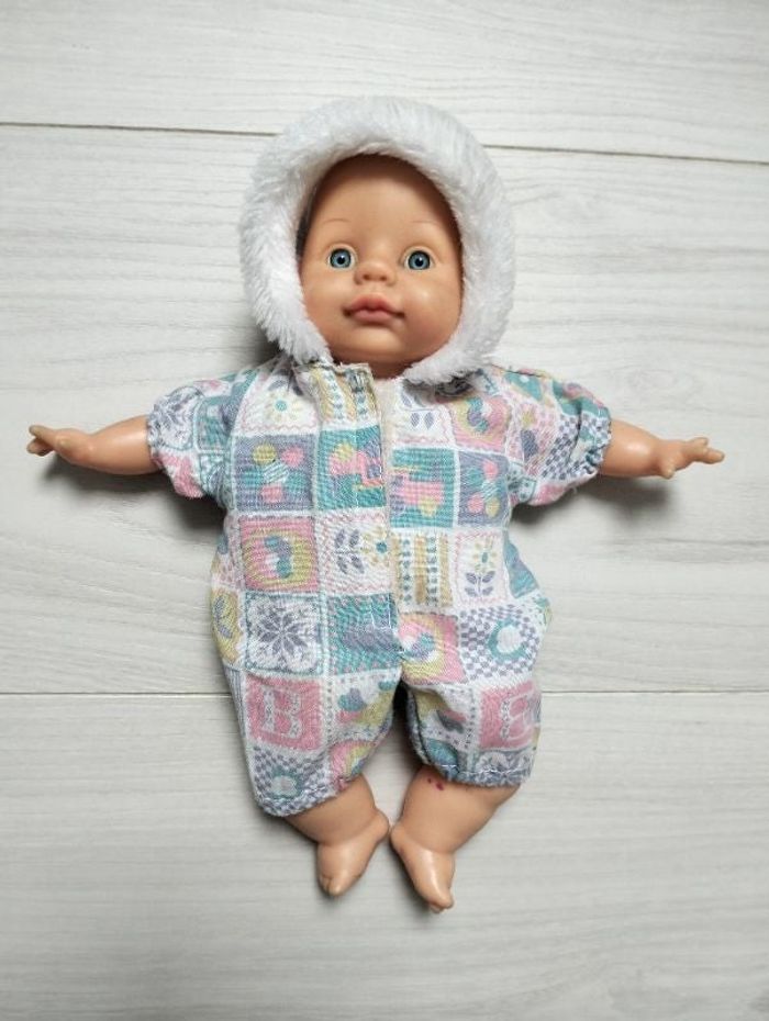 Joli bébé avec sa combinaison, état satisfaisant, traces de feutre sur les jambes.