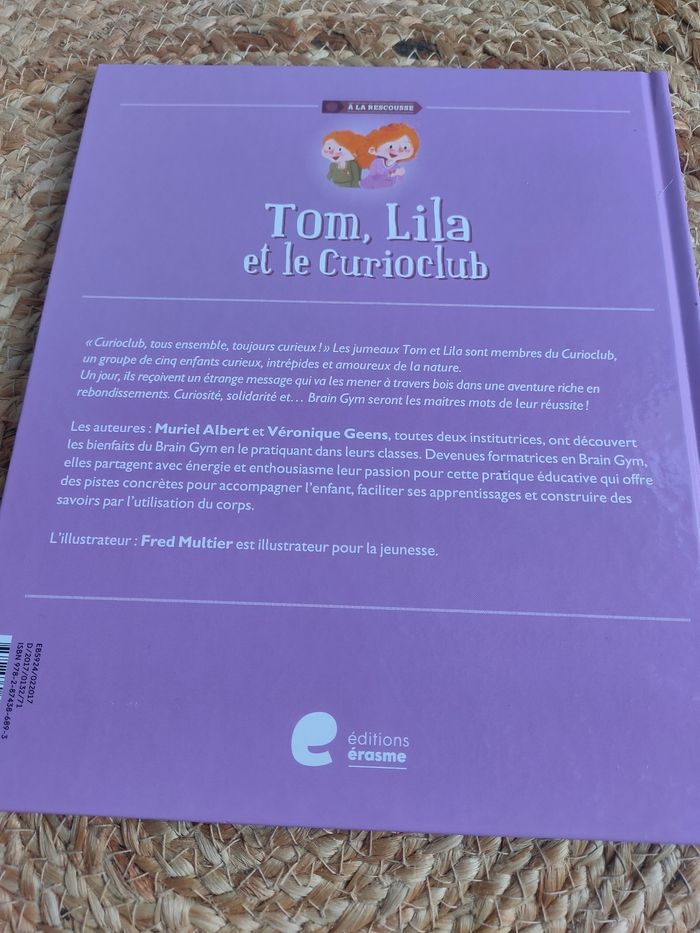 « Les jumeaux Tom et Lila sont membres du Curioclub, un groupe d’enfants curieux, intrépides et amoureux de la nature. Un jour, ils reçoivent une étrange énigme qui va les mener à travers bois dans une aventure riche en rebondissements. Curiosité, solidarité et...Brain Gym seront les maitres mots de leur réussite ! » . Jolie livre histoire pour découvrir le Brain Gym. Le livre est neuf, jamais ouvert. Prix ferme, PAS DE NÉGO !!! Prix neuf 18€ chez Cultura