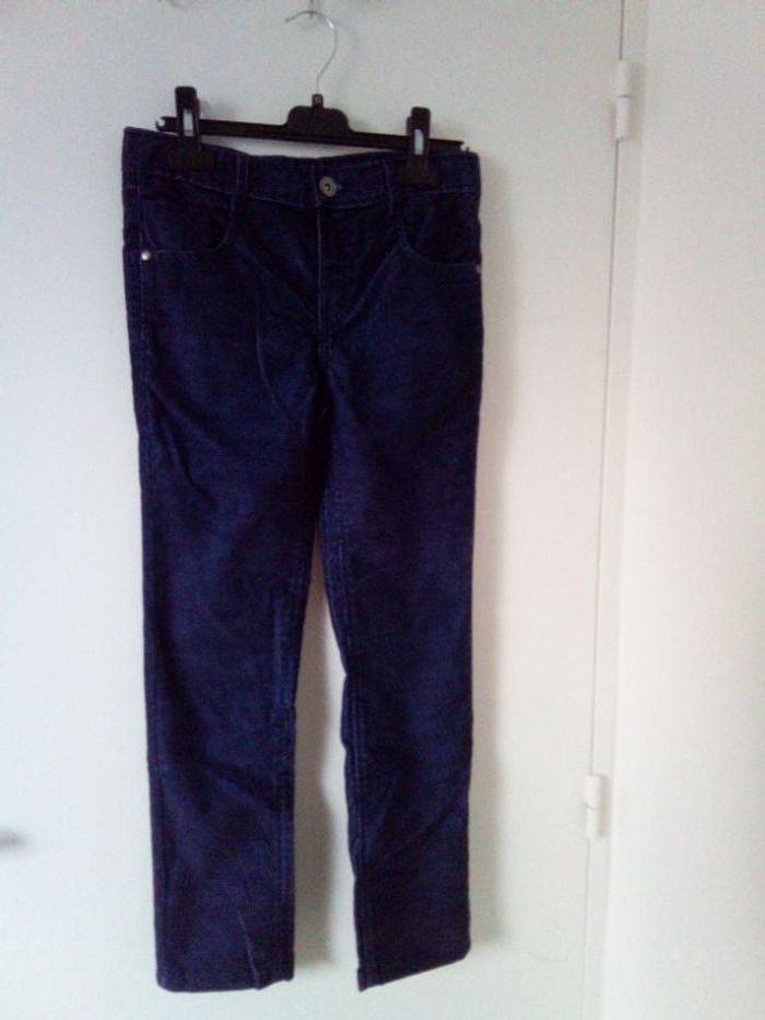 Pantalon velours bleu, 10 ans, taille ajustable.