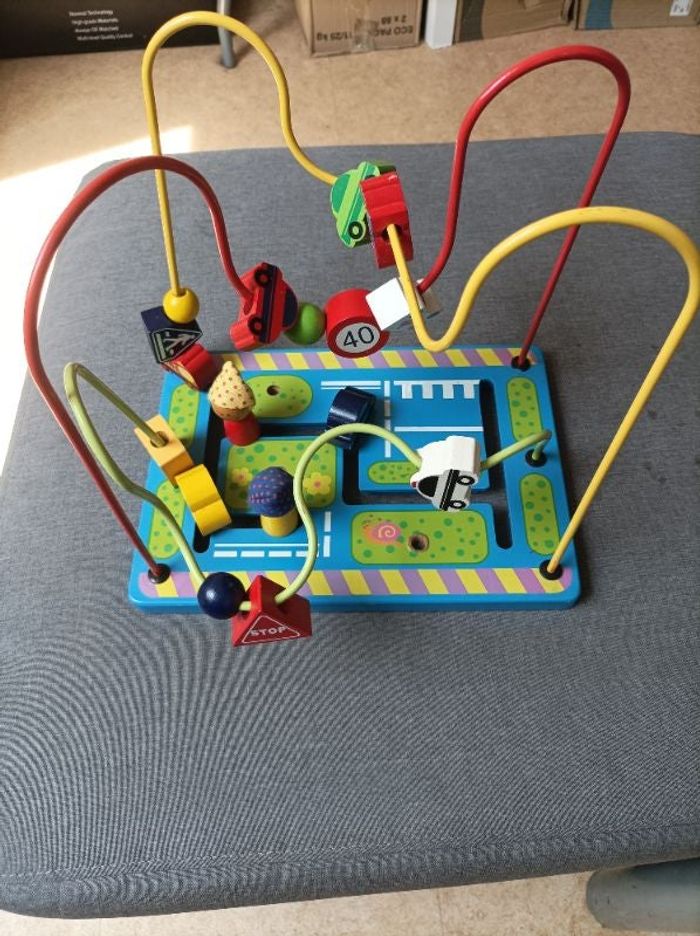 Jouet en bois pour travailler l'adresse et la dextérité.