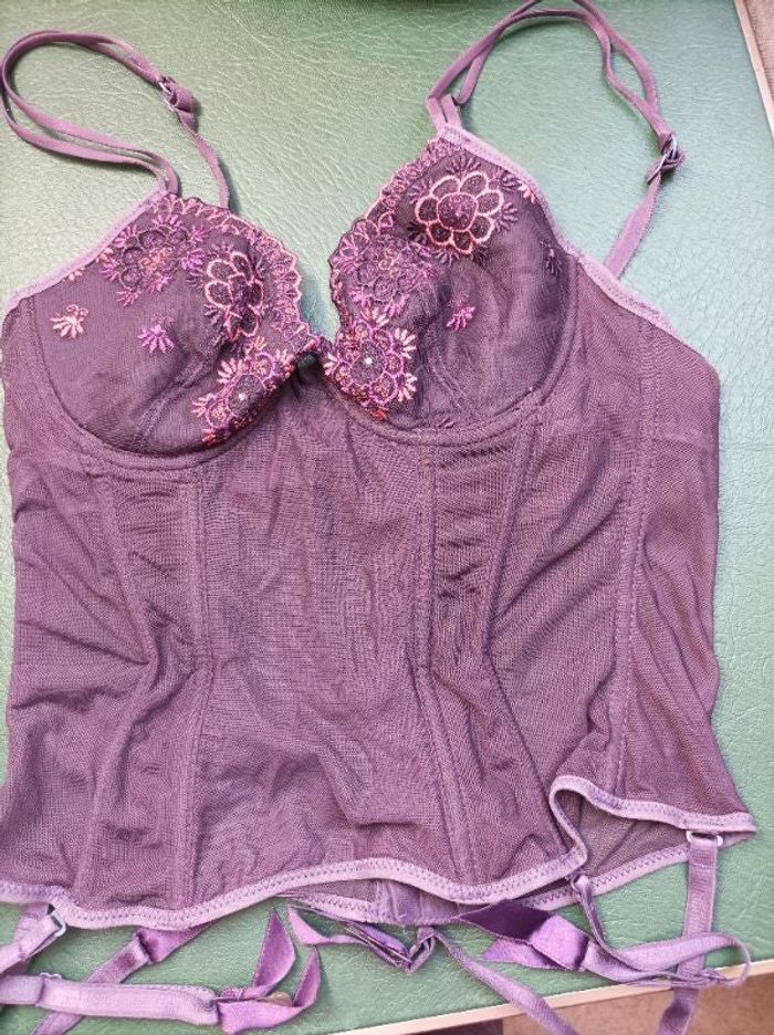 Bustier porte-jarretelles violet neuf, jamais porté. Taille 90B.