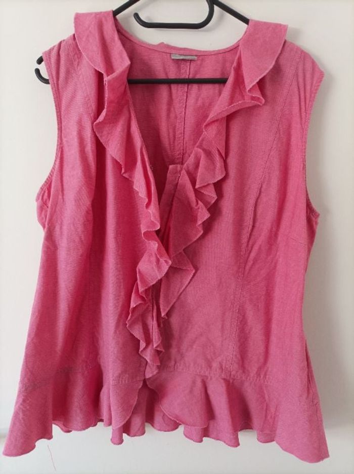 Blouse sans manches rose, fermeture par agraphes (voir photo 2).