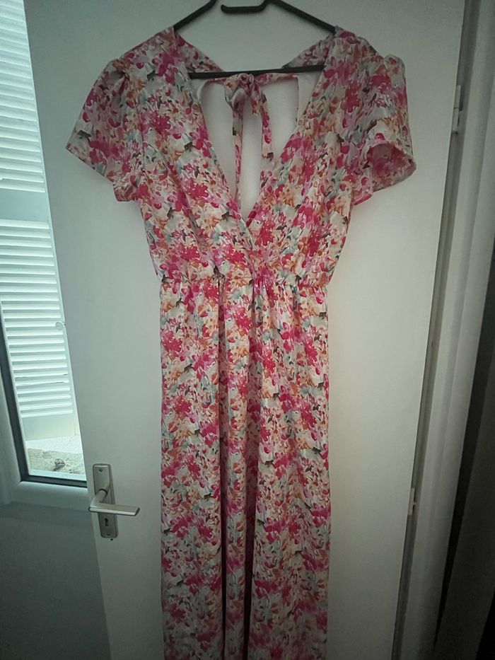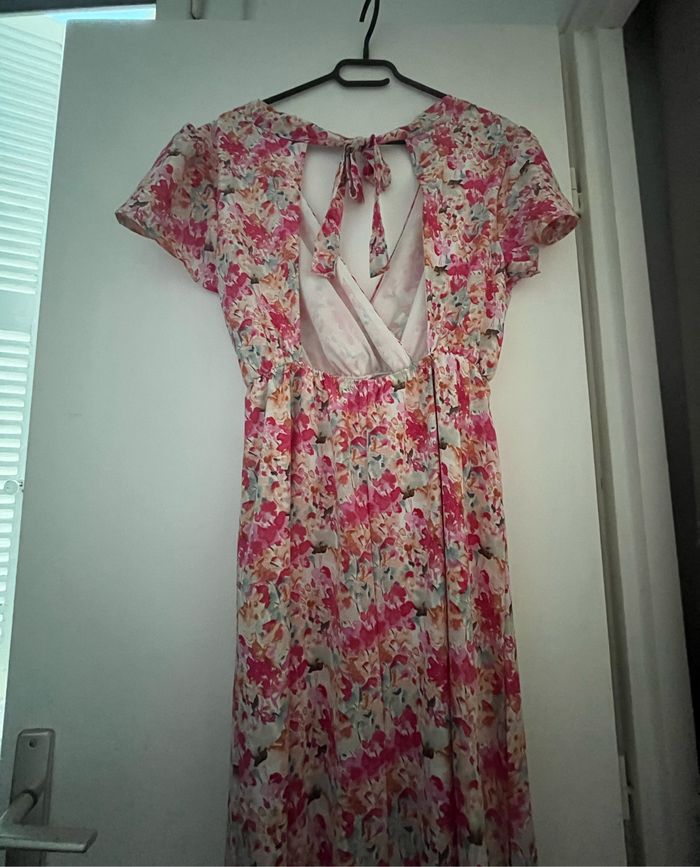 Robe de cérémonie dos nu. Le lacet vous permet de serrer et de desserrer à votre guise. Portée qu’une seule fois à un mariage. Fluide et idéal lorsqu’il fait chaud. Doublée du haut jusqu’au bas.