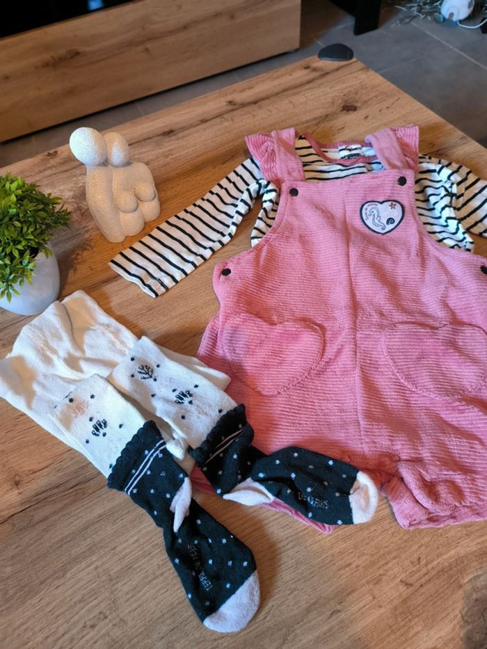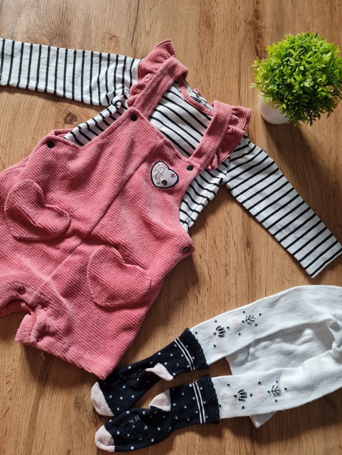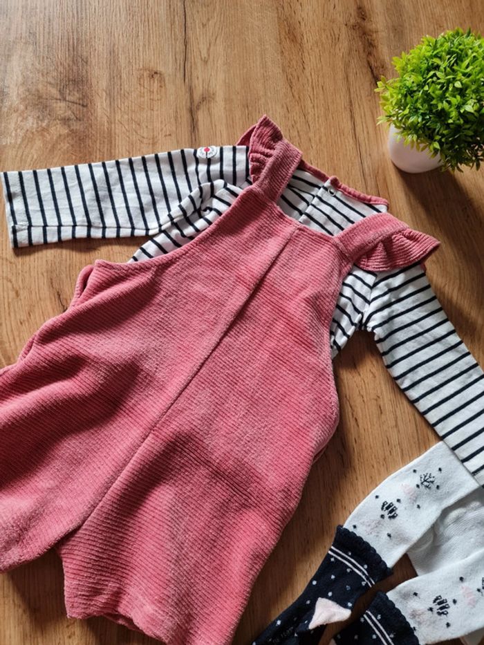 Ensemble 3 pièces terre de marins 12 mois T shirt salopette et collants Très bon état #jeckyzoe3_12mois