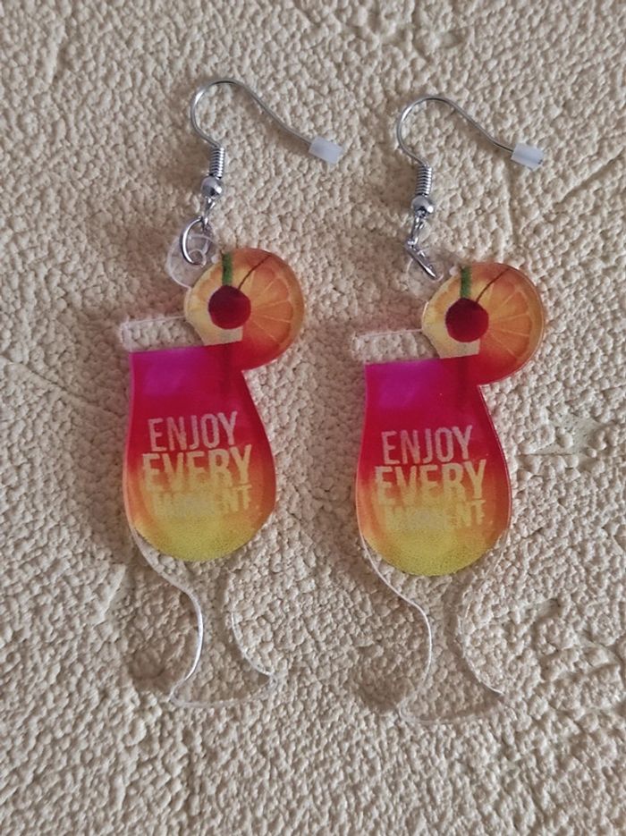 Vends boucles d'oreilles verre à cocktails Plastique Neuf