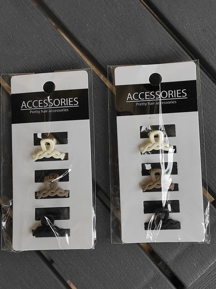 Vends lot de 6 Mini pinces à cheveux Blanc marron noir Neuves