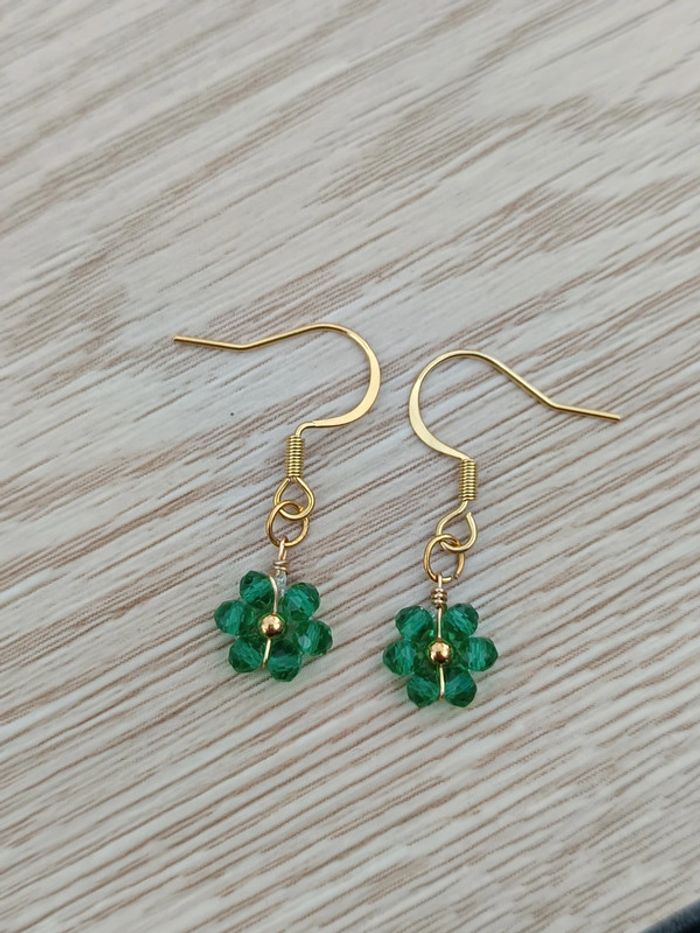 Adorables boucles d'oreilles fleuries, parfaites pour ajouter une touche de couleur ! Vert et doré Neuf Envoi rapide et soigné. 📦 #bouclesdoreilles #bouclesdoreillespendantes #fleurs