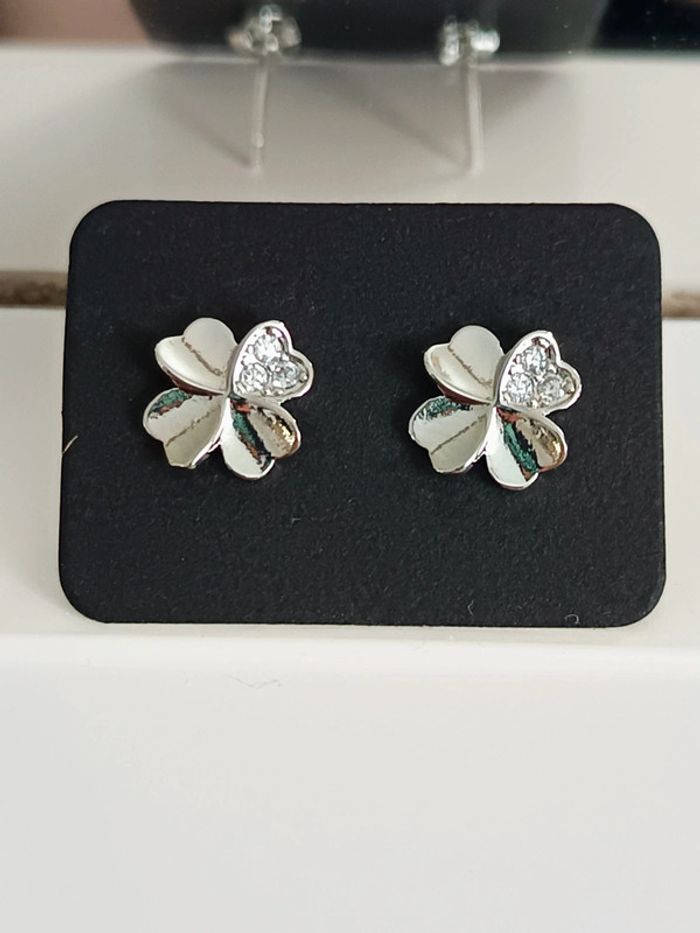Boucles d'oreilles trèfle et zirconiums Argent 925 Hauteur 1 cm Neuf avec emballage Envoi rapide 📦 #bouclesdoreilles #pucesdoreilles #argent #argent925