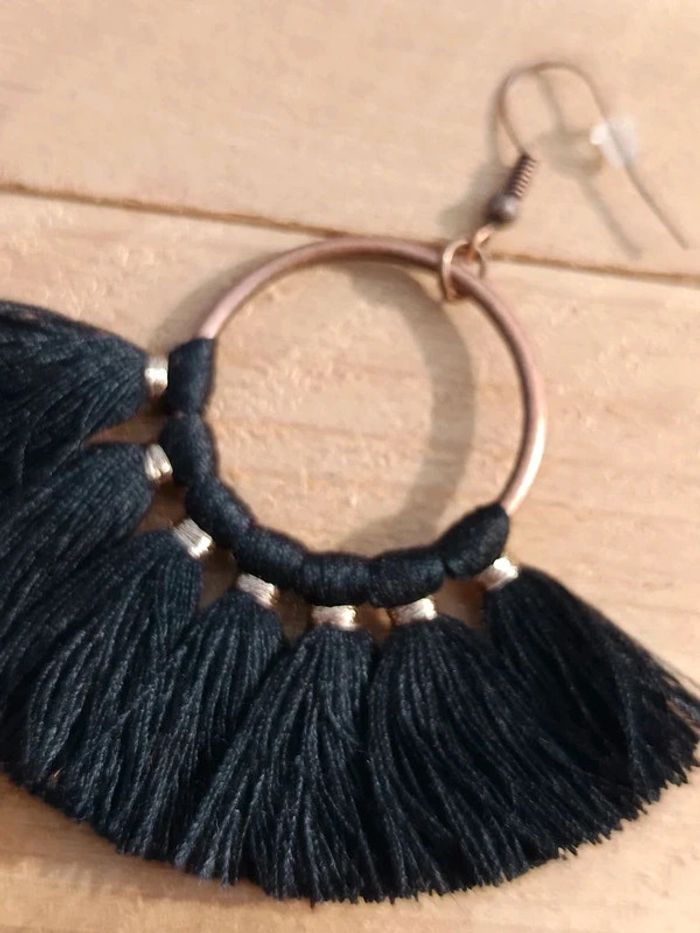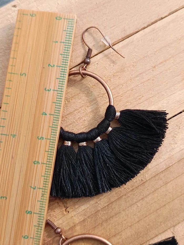 Boucles d’oreilles bohèmes Jolies boucles d’oreilles style bohème en fil noir et anneau cuivre. Très légères et pleines de charme, parfaites pour l’été ! Envoi rapide et soigné. 📦 #bijoubohème