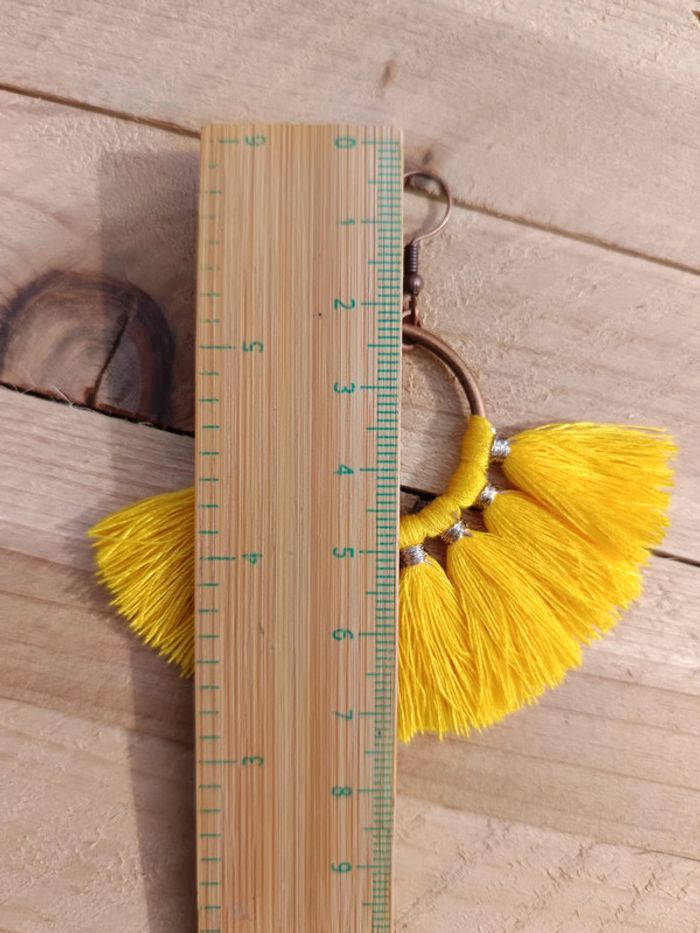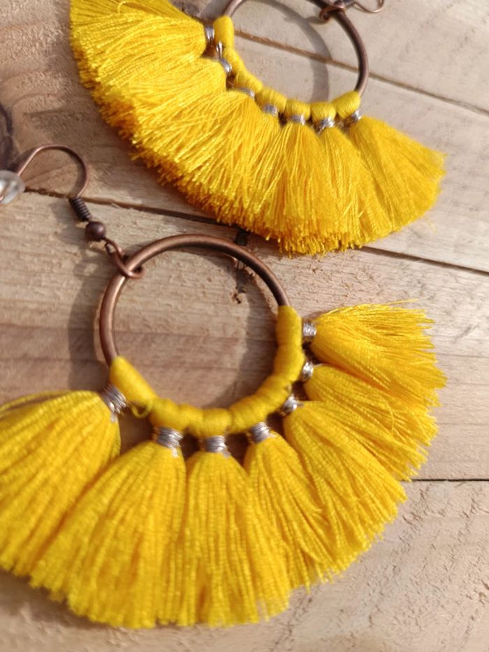 Boucles d’oreilles bohèmes Jolies boucles d’oreilles style bohème en fil jaune et anneau cuivre. Très légères et pleines de charme, parfaites pour l’été ! Envoi rapide et soigné. 📦 #bijoubohème
