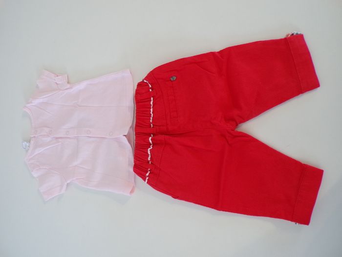 Vêtements bébé fille printemps / été 3 mois comme neuf. Le lot comprend un body (Alaisebreizh), un ensemble short (gémo), un T-shirt (Obaïbi, col un peu jauni, devrait partir au lavage), deux pantalons léger (Tex), pantalon rouge assez léger (Sergent Major). Mon dressing est trié par catégories, tailles et saisons pour les vêtements. Cliquez sur mes liens # qui sont dans l'annonce. #sonia222404 #fille3moisprintempsétésonia222404
