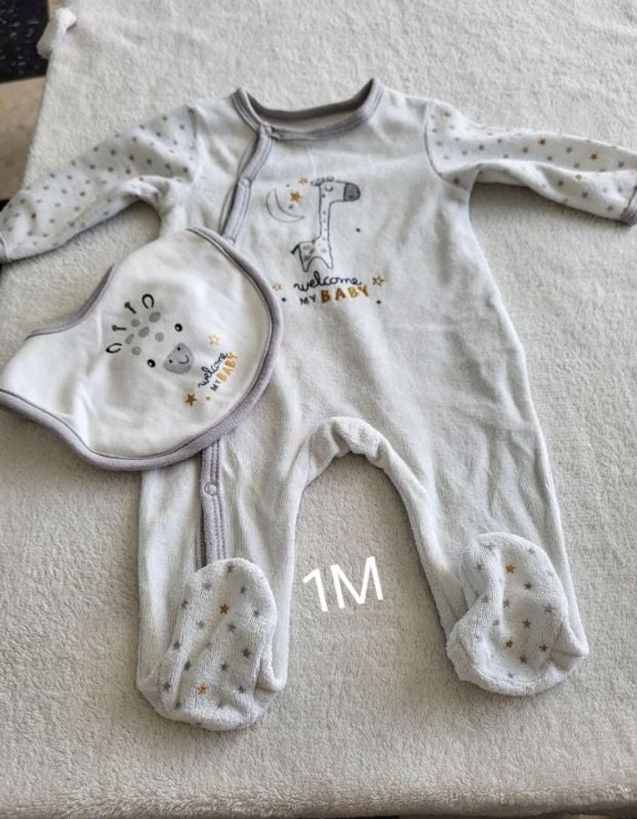 Pyjama avec son bavoir 1 mois Pat & Ripaton en très bon état