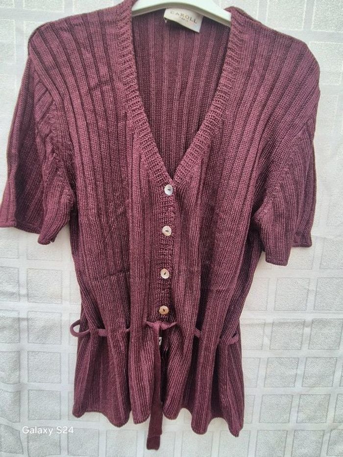 ⬇️mes autres annonces pour femme en taille 44 👉 #cg89femme44 tshirt avec lien à nouer à la taille et de jolis boutons couleur nacre qui contrastent avec sa couleur prune. Il mesure 62 cm de longueur et 50 cm aux aisselles. très bon état - taille 44 - marque Caroll #tshirt #caroll #taille44 #haut #top #blouse