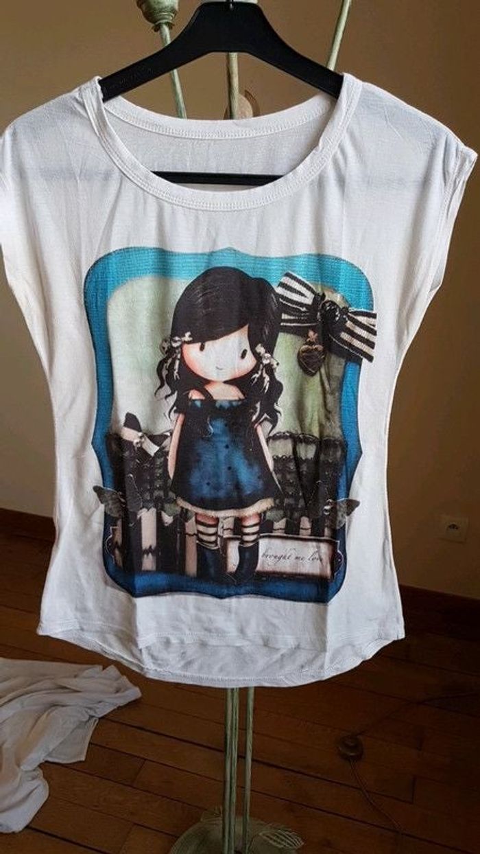 ⬇️mes autres annonces pour femme taille 38👉 #cg89femme38 😁 réductions activées des 2 articles ! une tunique ou t-shirt imprimé jeune fille dans l'air du temps santoro bon état, taille 38 #tshirttaille38 #tshirtsantoro