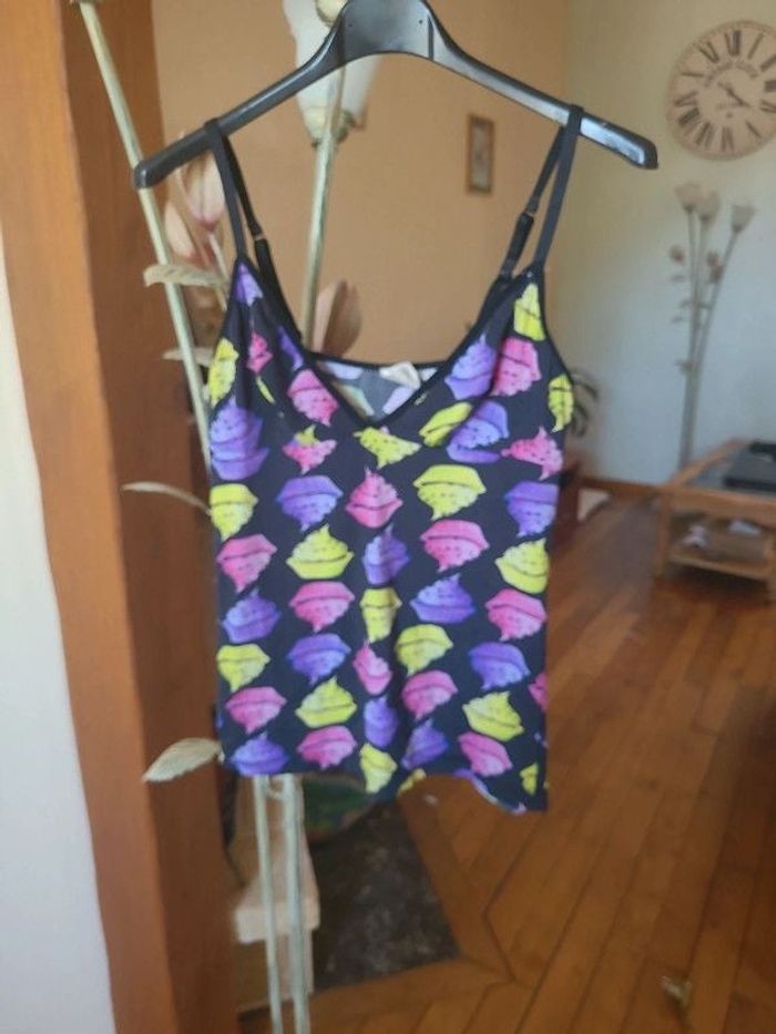 ⬇️mes autres annonces pour femme taille 36👉 #cg89femme36 😁 réductions activées des 2 articles ! un débardeur ou top imprimé avec de jolies cupcakes de couleur acidulés. Les bretelles sont réglables. Il mesure 34 cm aisselle à aisselles et 53 cm longueur Marque envog, taille 36, en bon état #debardeurtaille36 #toptaille36 #debardeur