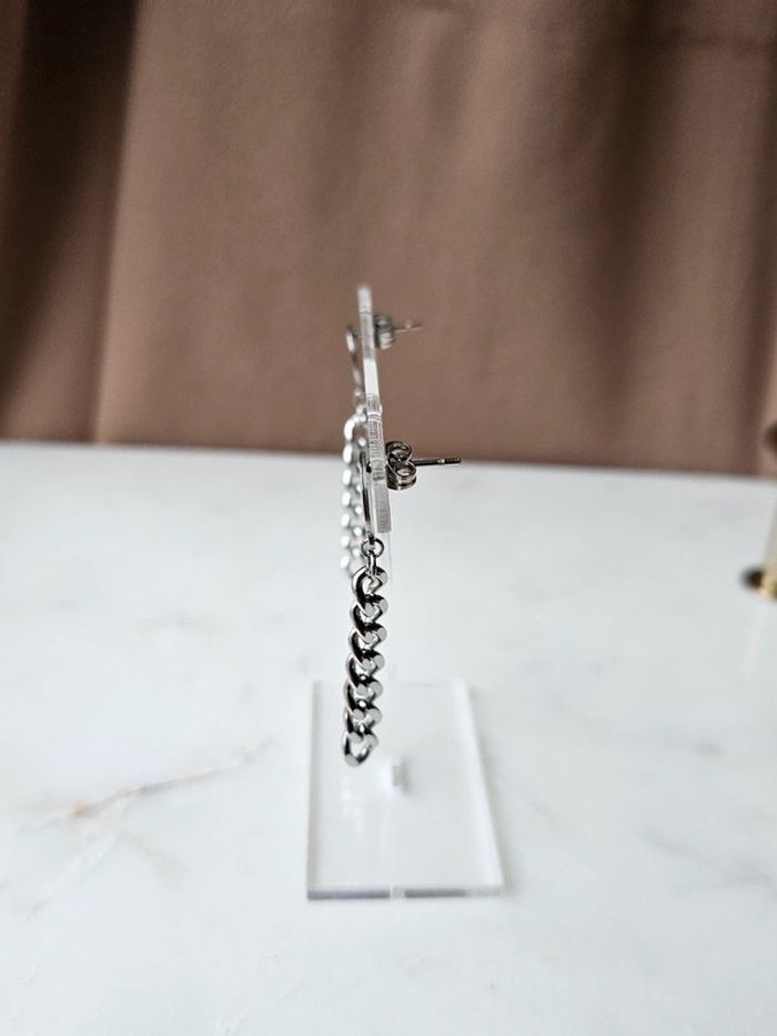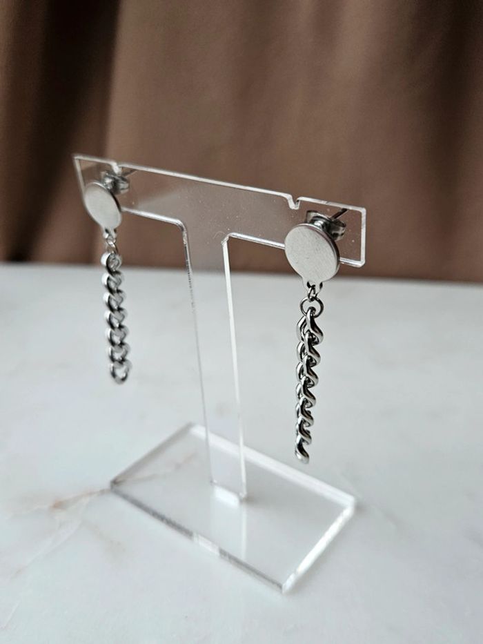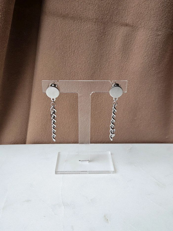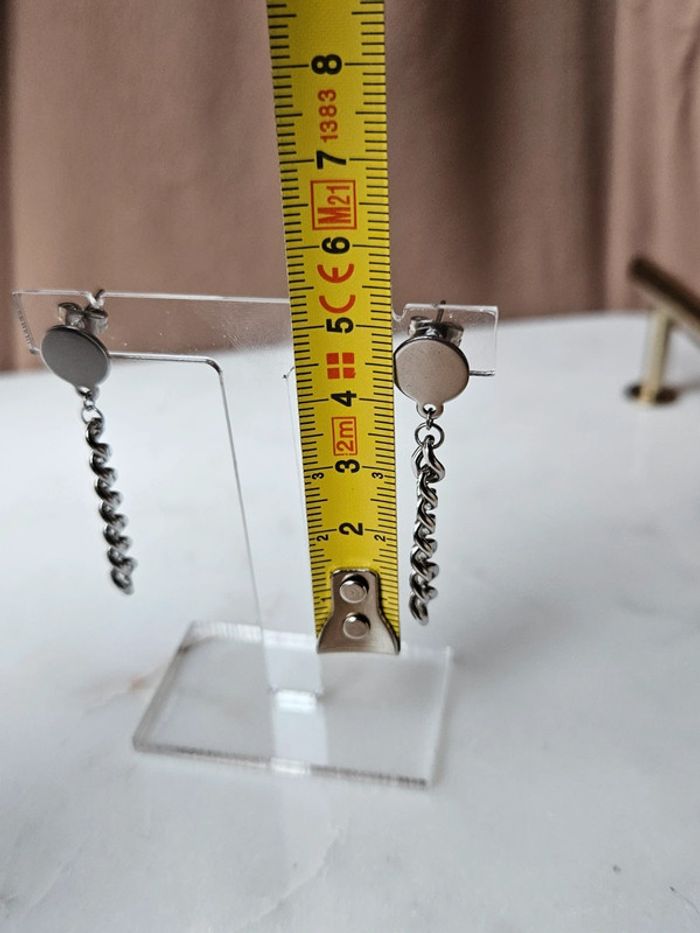 - boucles d'oreilles chaîne - en acier inoxydable - argenté - porté une fois - mesures sur les photos