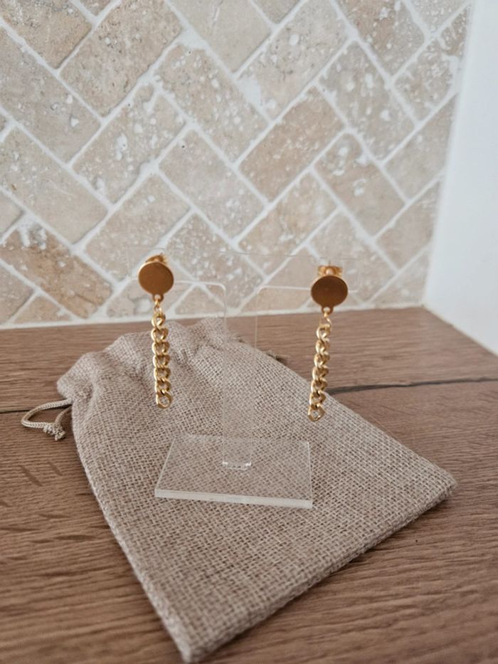 - boucles d'oreilles - acier inoxydable doré - neuve - chaîne - mesures sur les photos