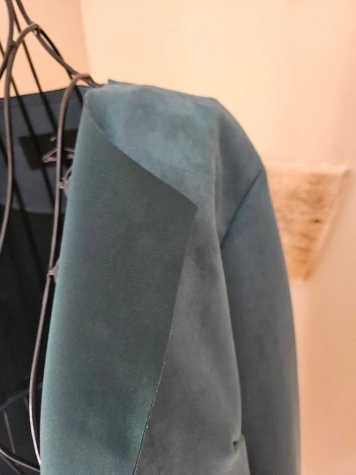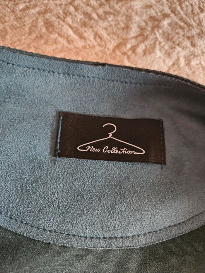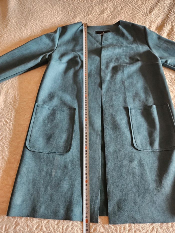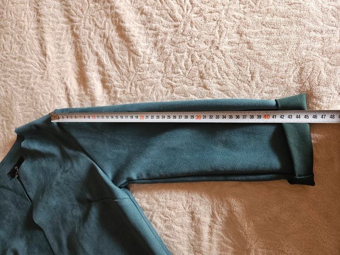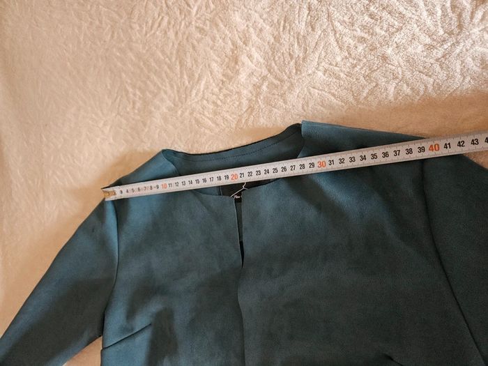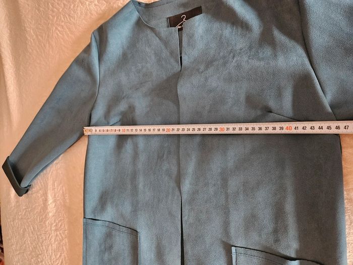 - veste effet suédine - de cleur bleu canard (ressort mal sur les photos) - neuve - taille unique / correspond à une taille 38 - mesures sur les photos