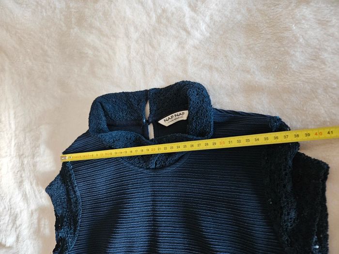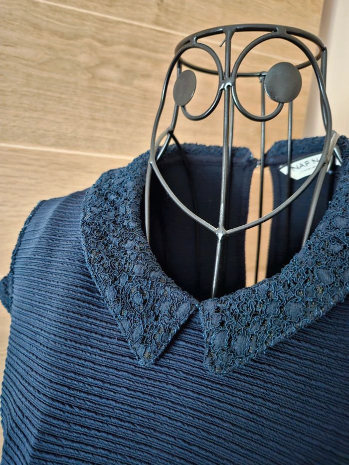 - robe naf naf - taille 38 - portée 1 ou 2 fois - bleu unie -col Claudine - petites manches - mesures sur les photos - matière un peu élastique