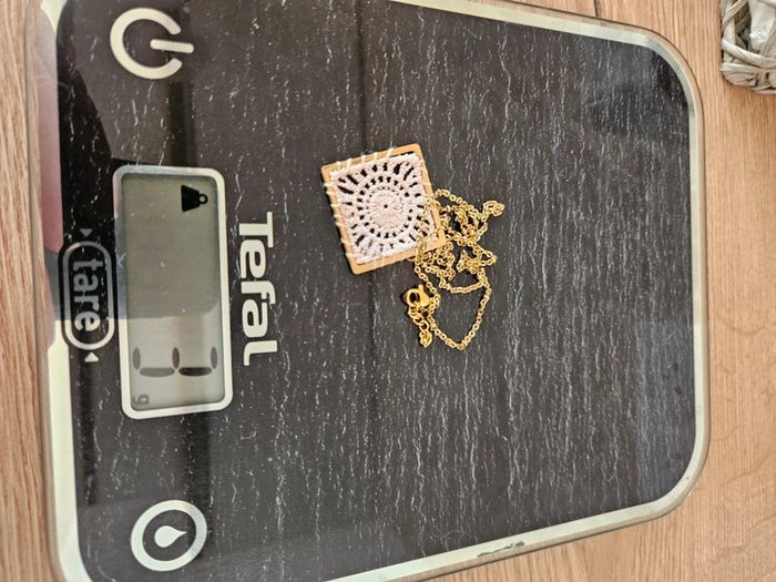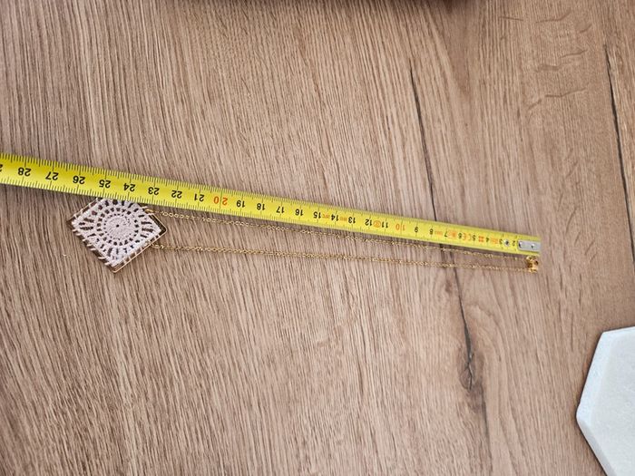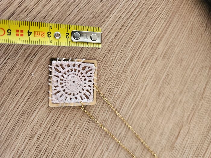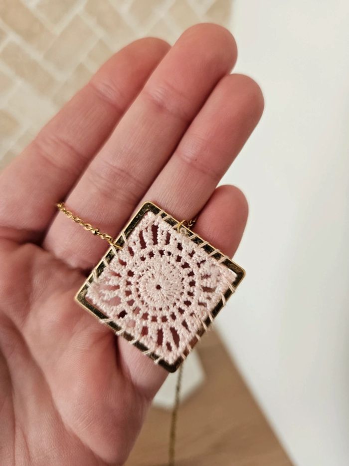 - collier en acier inoxydable doré - pendentif carré en crochet rose - mesures sur les photos - jamais porté