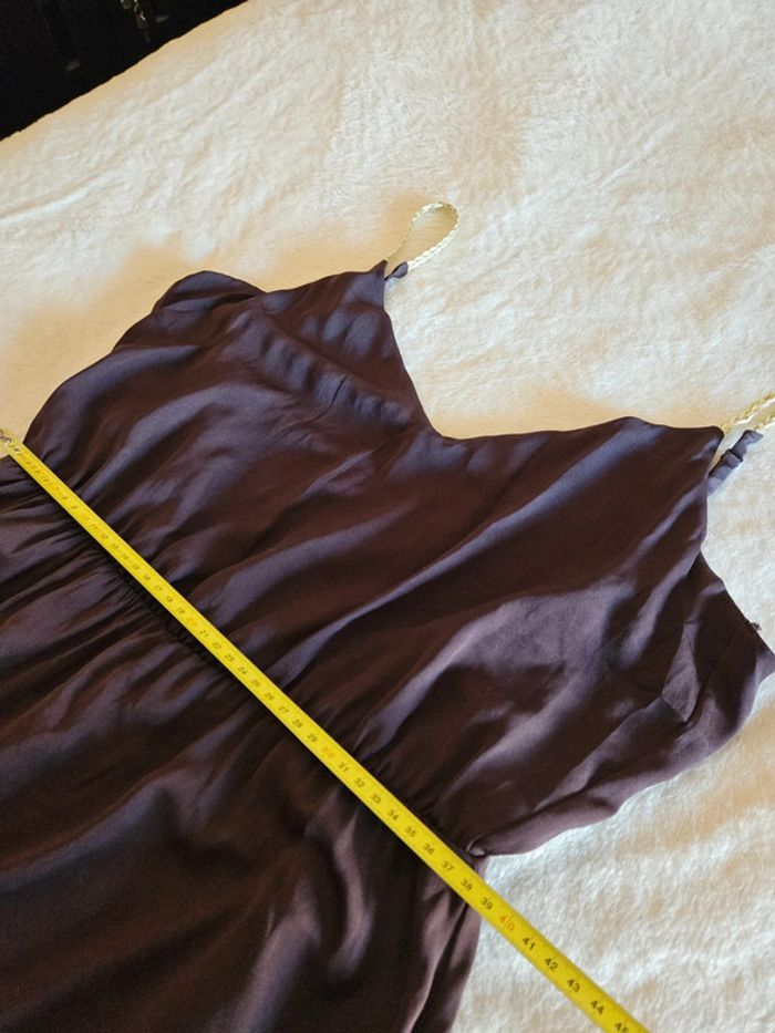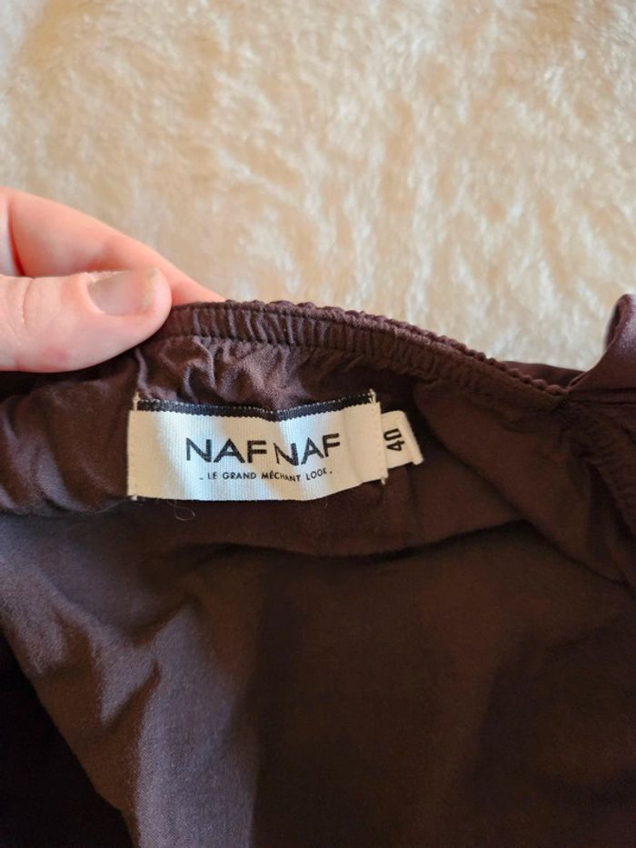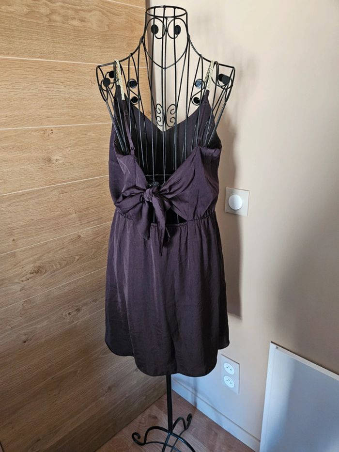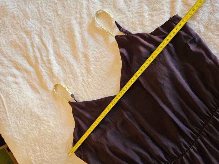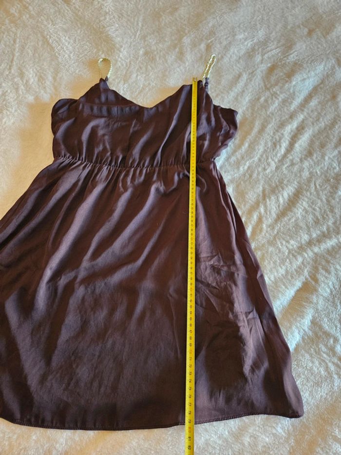 - robe naf naf - de couleur marron satiné - bretelles fines tressé blanche et doré - nœud à faire dans le dos - taille 40 - élastique au niveau des hanches - très bon état, portée une fois - mesures sur les photos